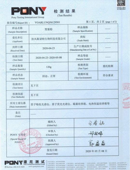 产品简介:采用雪梨果浆喷雾干燥而成,很好的保留了果蔬中原有的活性成分和营养价值。